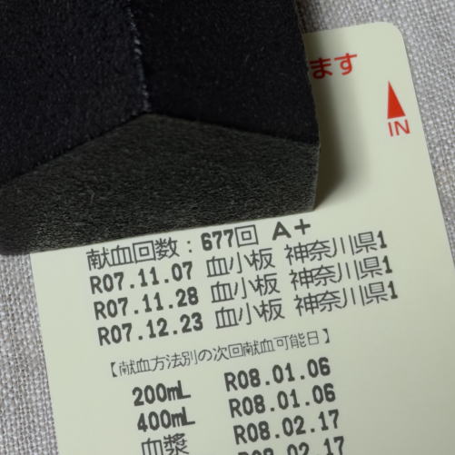 01.26 (金) 血小板 かわさきルフロン献血ルーム 神奈川県